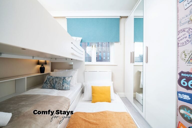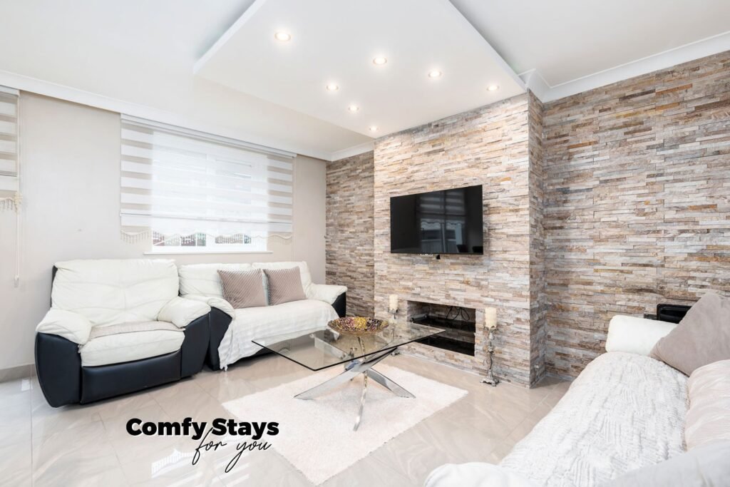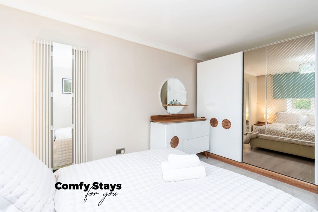 Our 3-bed flat, which can accommodate up to 6 guests, is designed to offer comfort and style, making it the perfect place to relax after a busy day.